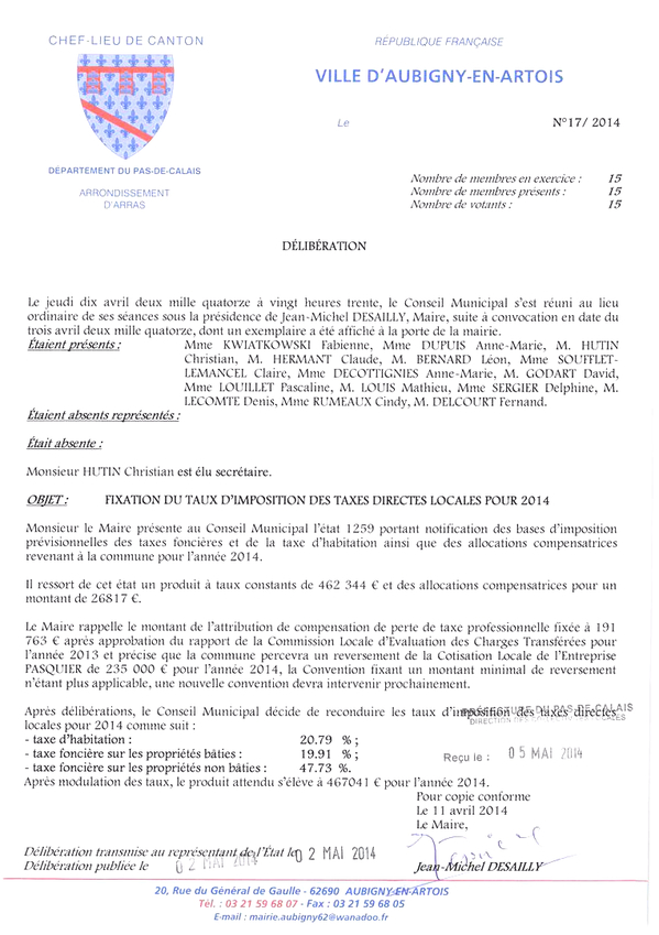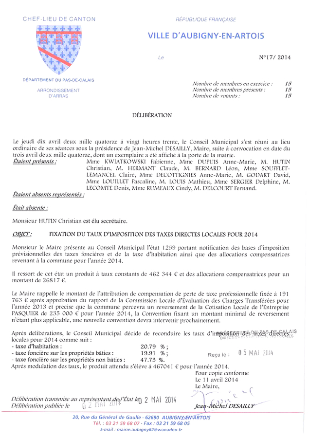 Siège social Commune d'Aubigny en Artois 20 Rue du Général de Gaulle 62690 AUBIGNY-EN-ARTOIS