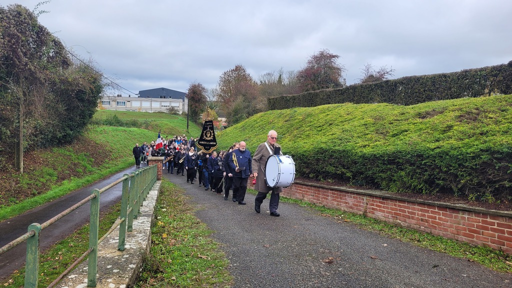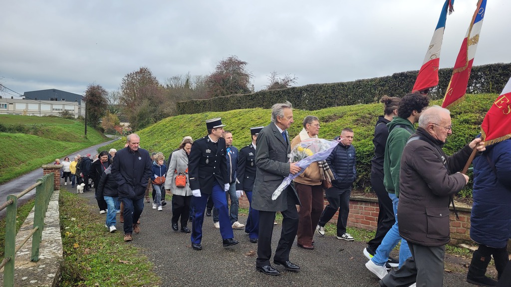 S'en est suivi un défilé jusqu'au Monument aux Morts place de l'église ou a été lu, par Monsieur le Maire, le message officiel de Madame Catherine Vautrin, ministre des Armées et des anciens combattants et de Madame Alice Rufo, ministre déléguée auprès de la ministre des Armées et des Anciens combattants, ainsi que la liste des morts pour la France dans l’année.